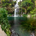 la base de la cascade, offrant une immersion totale dans la nature mauricienne.