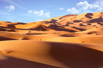 Merzouga est une entrée du désert marocain pour s'aventurer dans l'immensité des dunes de l’Erg Chebbi et passer la nuit dans un camp de tentes.