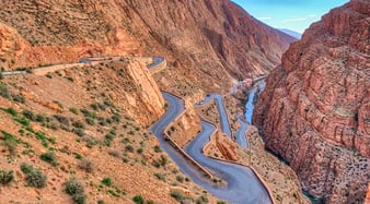 Les Gorges du Dadès sont des canyons impressionnants aux falaises ocres escarpées, au fond desquels serpente une rivière, source de vie et de fraîcheur avec ses jardins en terrasse. C'est un haut lieu de randonnée.