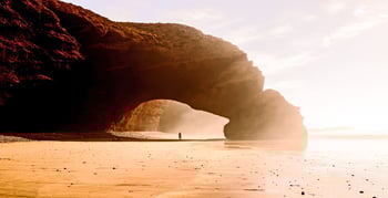 Legzira est réputée pour ses formations rocheuses et ses arches naturelles de pierre rouge.