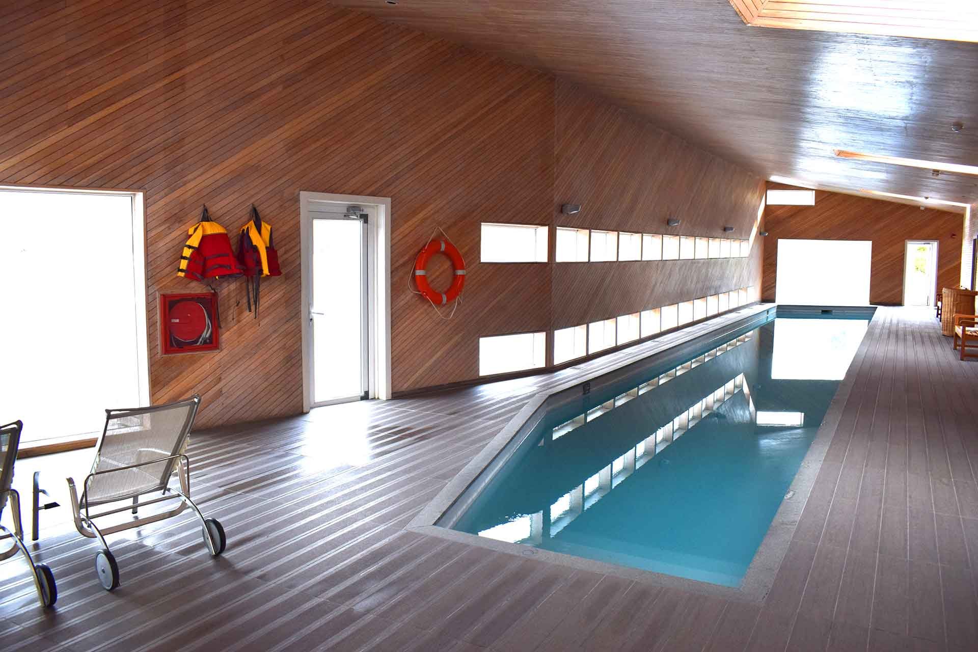 Piscine intérieure chauffée, hammam, jacuzzis en plein air avec vue sur la rivière Paine.